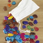 Fairly traded and ethically sourced, assorted sizes and colours of tagua nut pieces in a cotton drawstring bag.