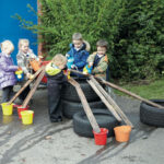 Natural wooden guttering channels, ideal for water play or experimenting with forces.