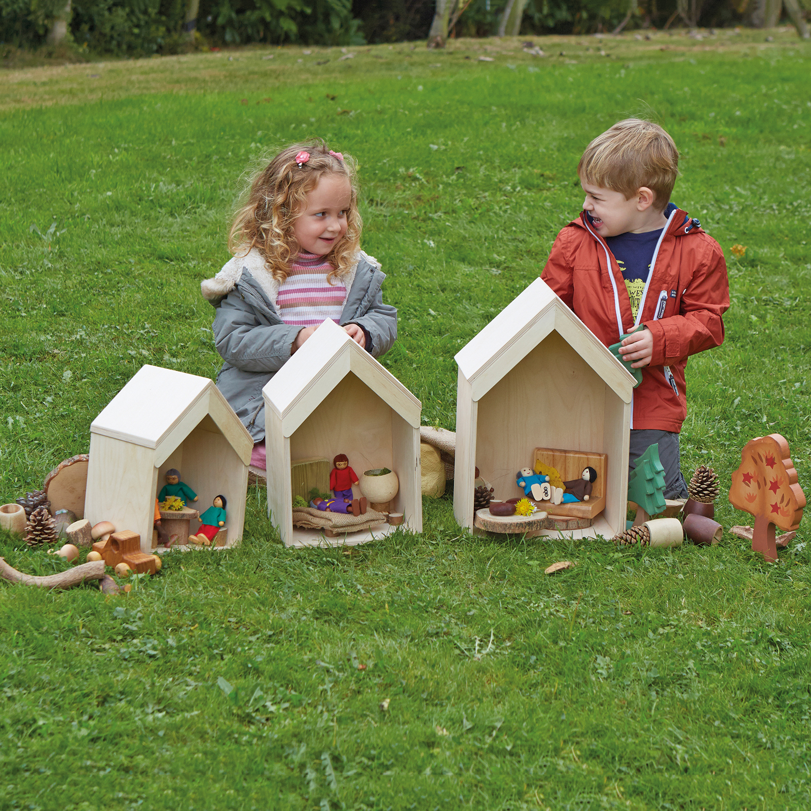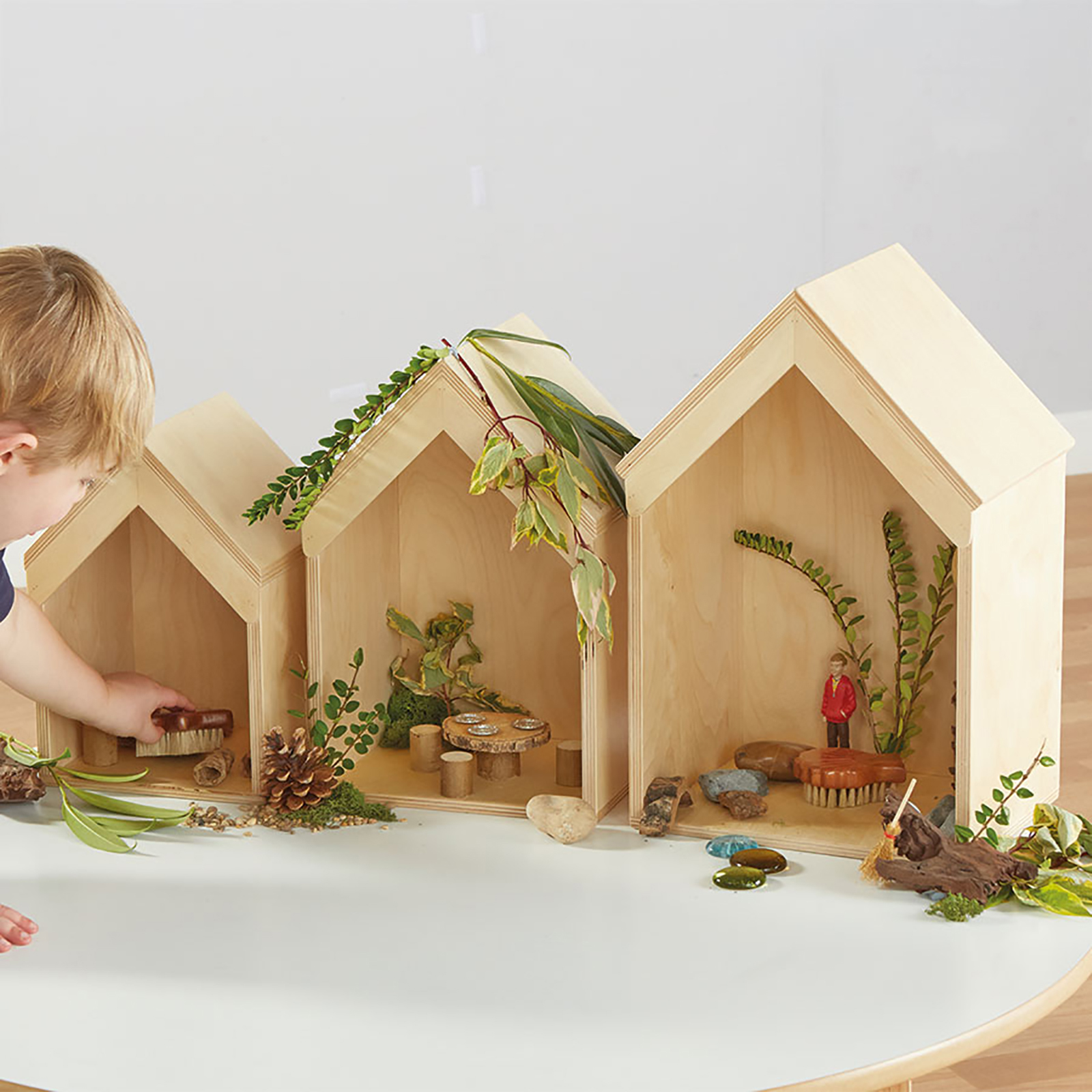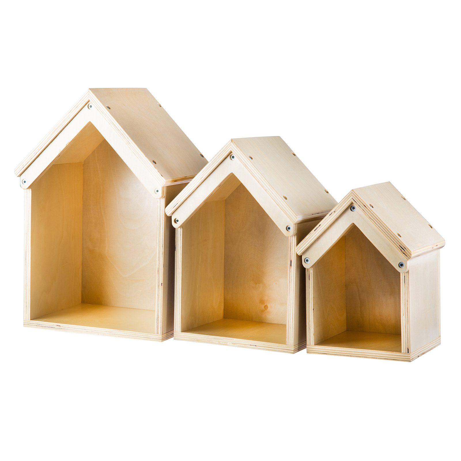Nesting Wooden Small World Houses 3pk