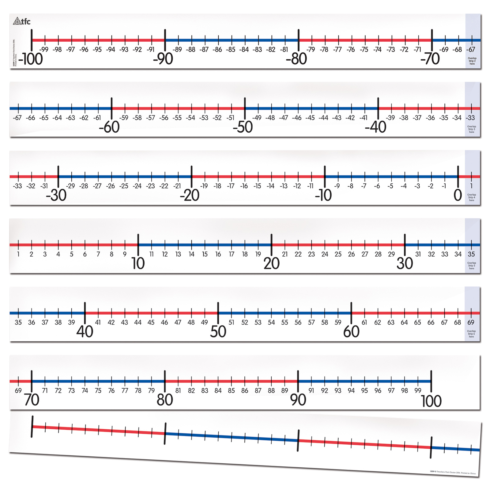 Number Line -100 to 100 in Six Sections