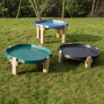 This wooden tuff tray stand supports Active World Trays, which lift out easily for cleaning.