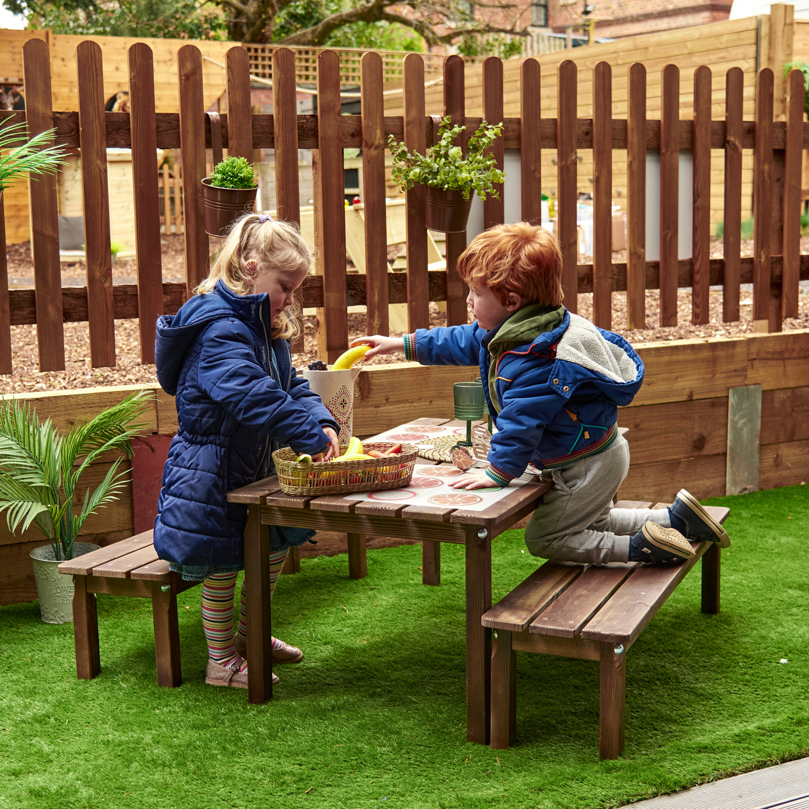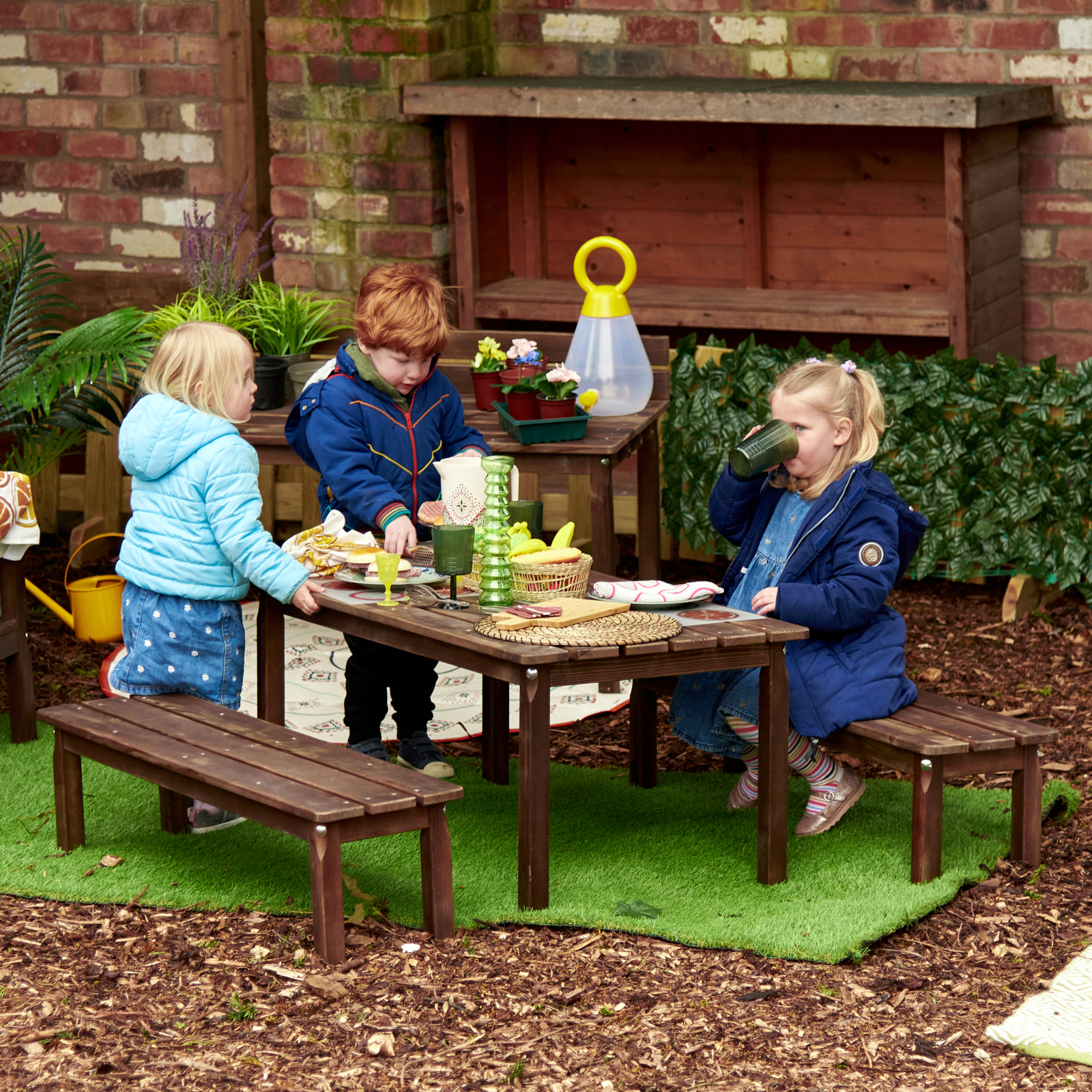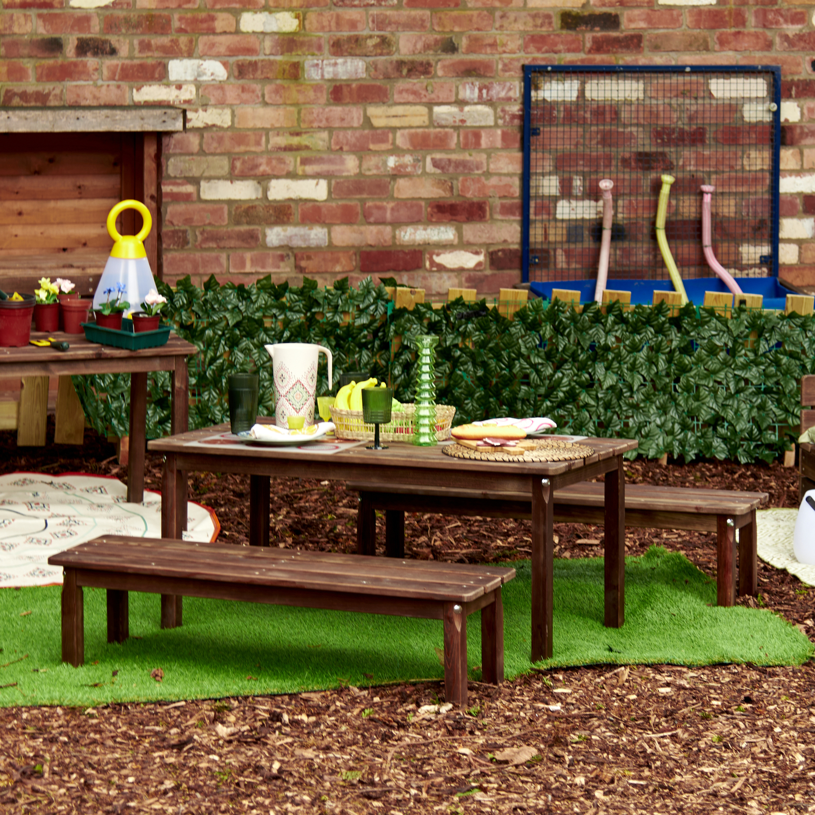 Outdoor Dining Table with Benches
