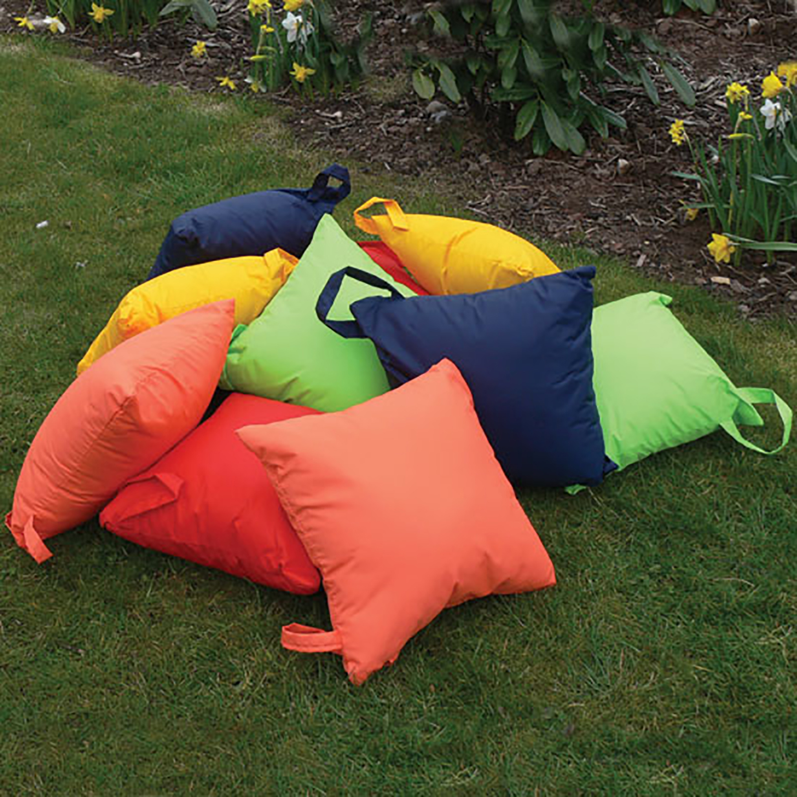 A perfect set of waterproof cushions to create welcoming outdoor reading areas in your school.