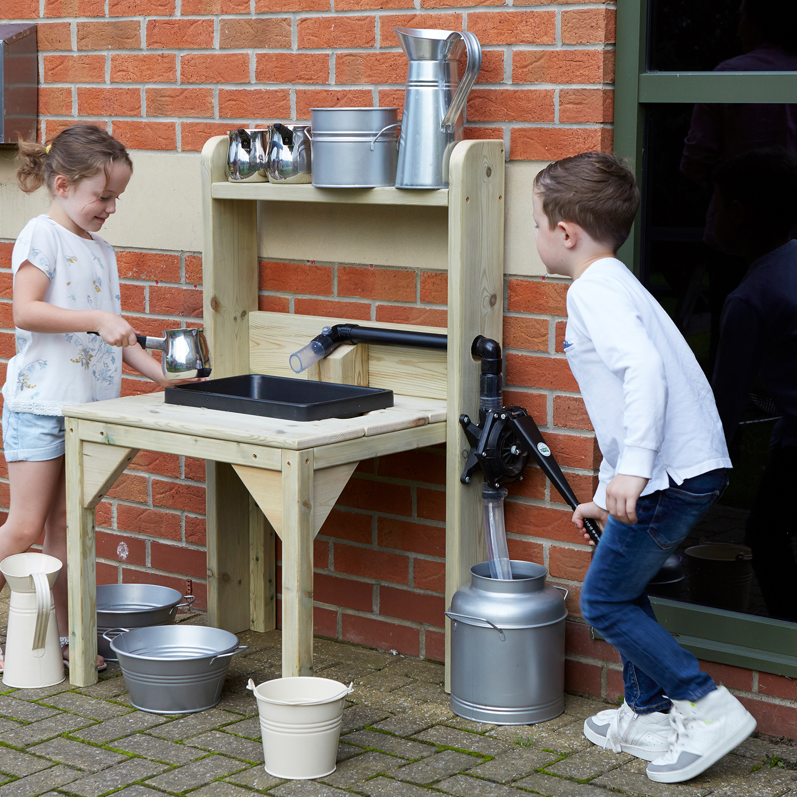 Children will love independently using the water pump.