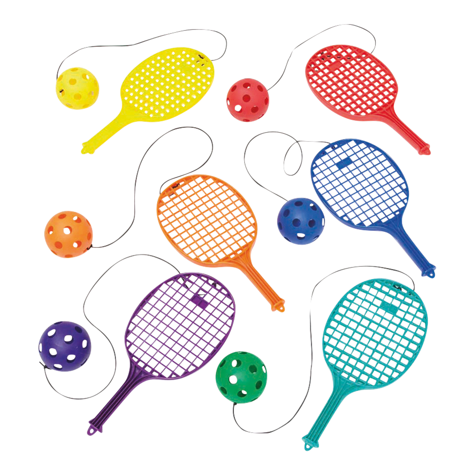 Plastic Playground Bat with Ball on String 6pk