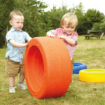 Encourage gross motor skill development as children stack and roll.