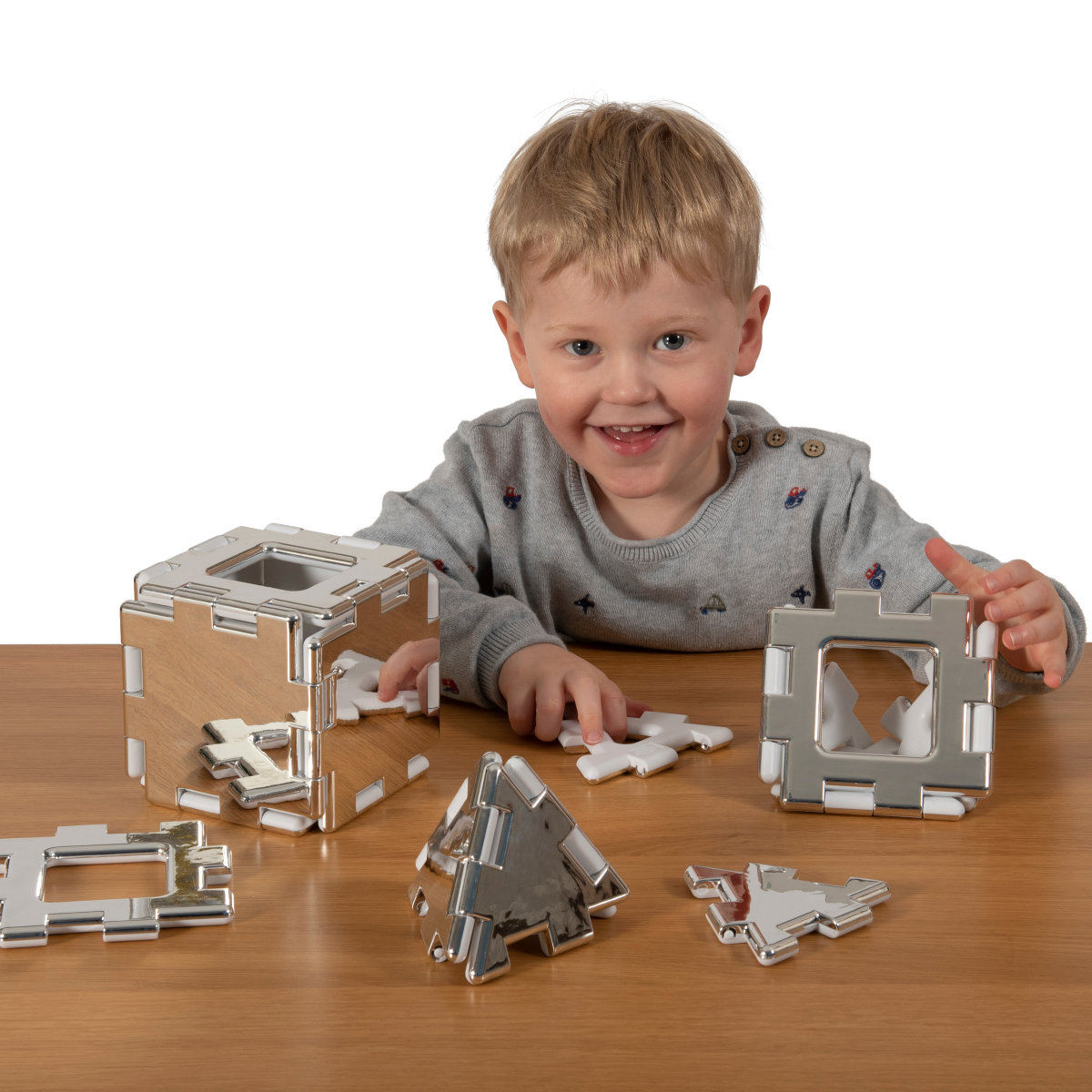 These stunning mirrored pieces are ideal for teaching reflection. Younger children can look at themselves and the world around them. All the pieces are hard wearing and fully compatible with other My First Polydron Sets. This 16-piece set contains an equal number of squares and triangles. Age: 2+.