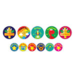 Compilation pack of motivational stickers with captions including well done, great, fabulous, super star and really good.