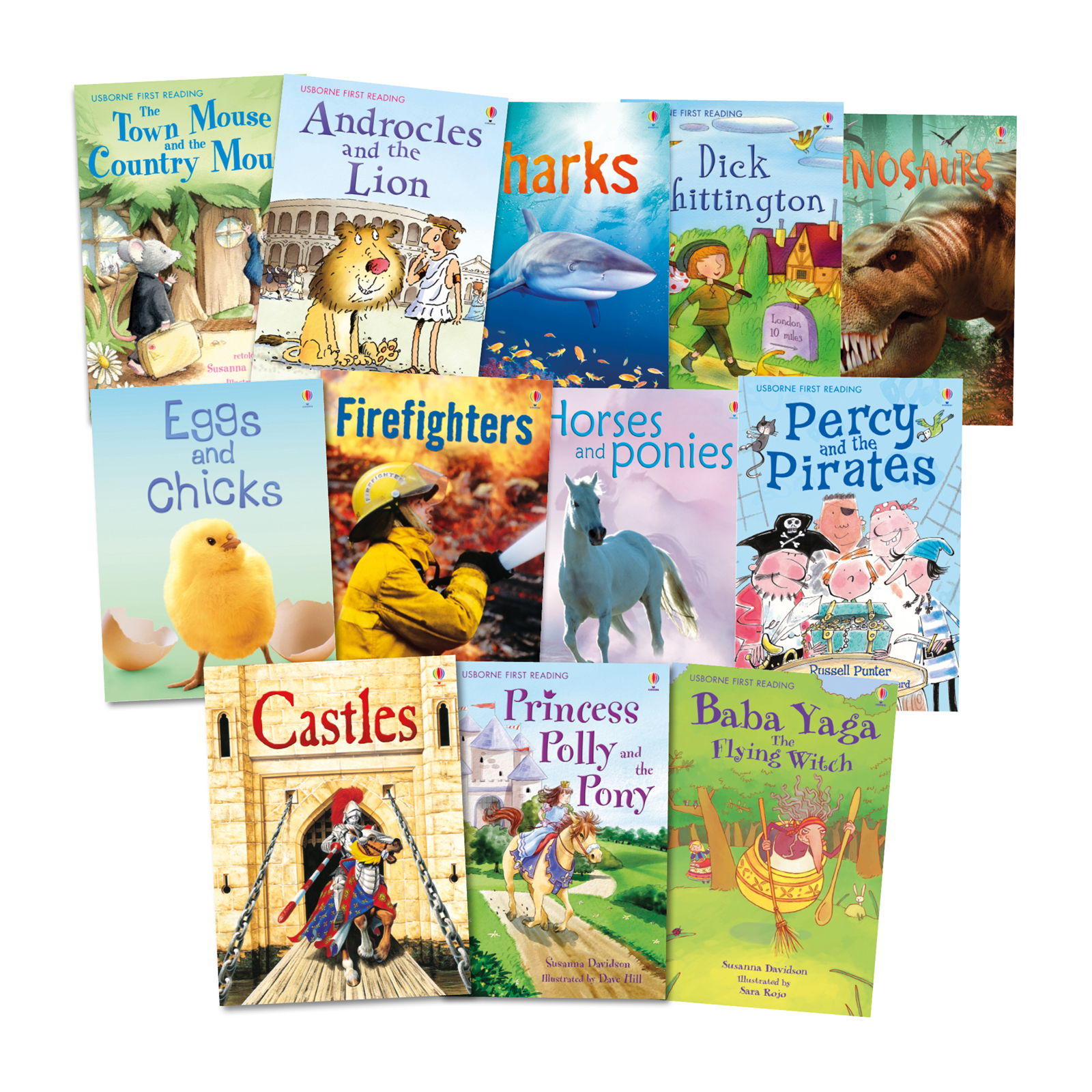 Pack 1 contains 18 books, Pack 2 contains 15. Titles may vary.