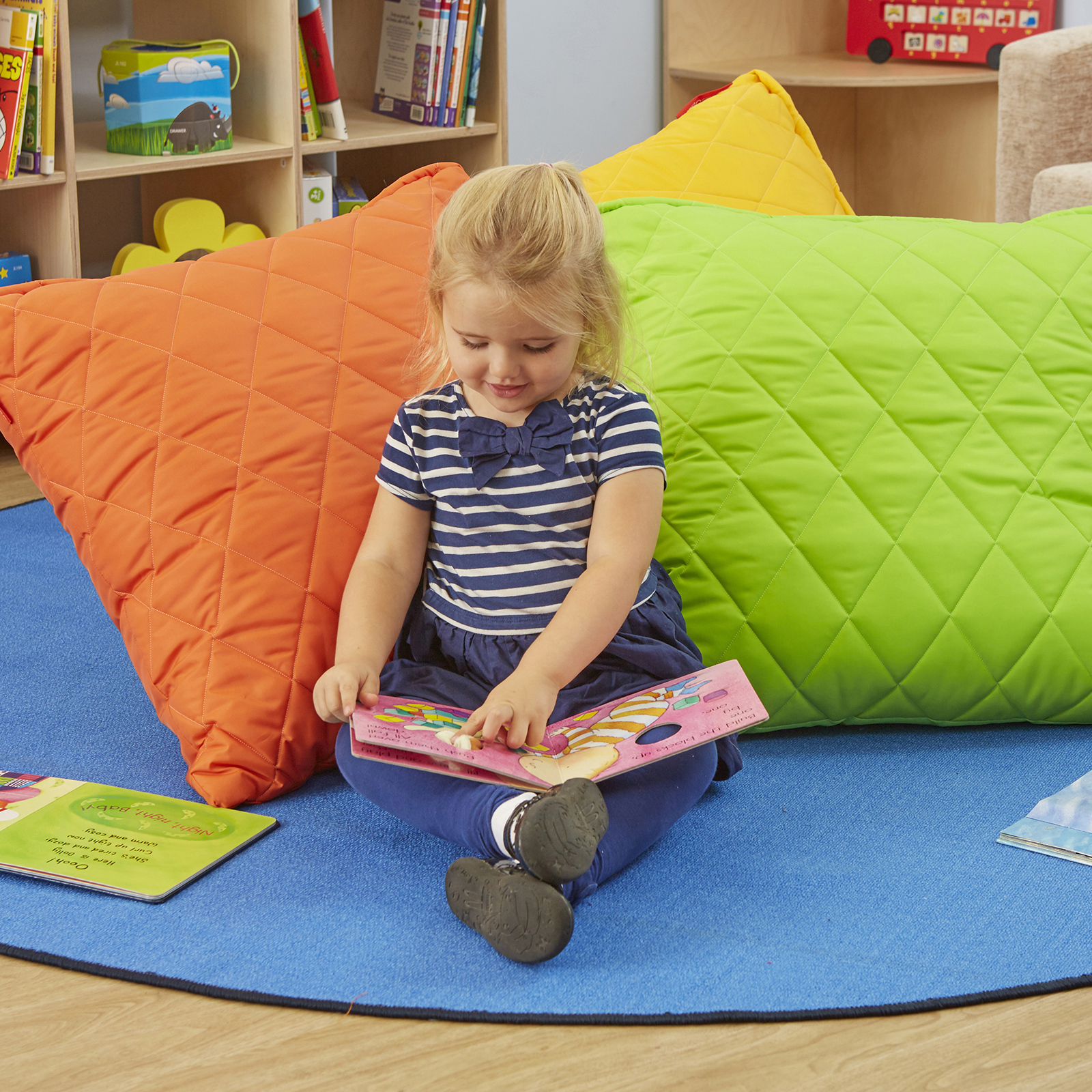 These large bright cushions mean there is space for everybody.