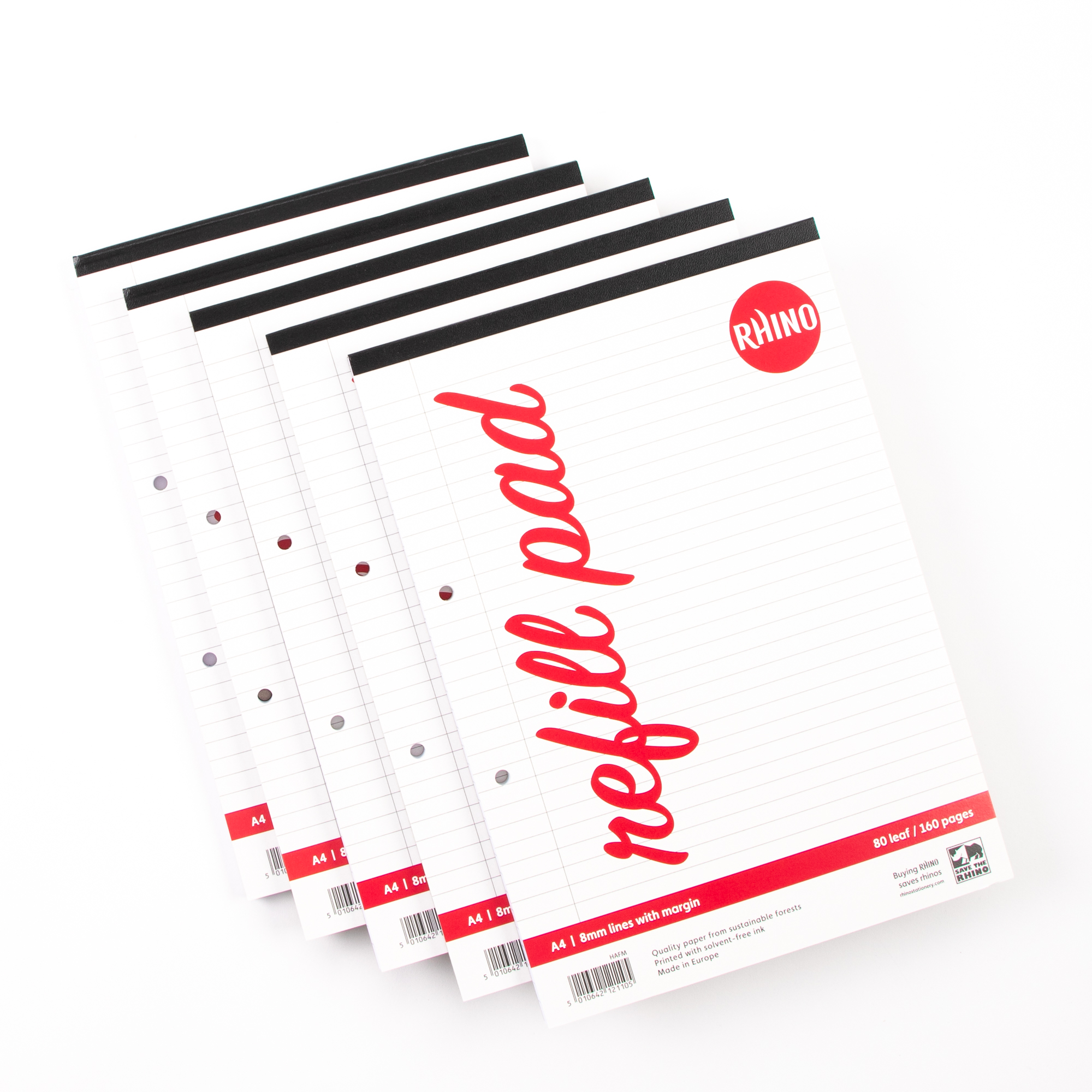 With 8mm lines and margins, this Rhino Headbound Refill Pad gives you 160 pages to fill with important notes, work, and ideas. It?s a premium refill with quality you?ll see in every detail, from the education-standard paper to the strong card covers.160 pages of A4 (297 x 210mm approx.) lined paper with 8mm lines and marginsPremium paper that is thick enough to write on both sides100% recyclablePrinted using solvent free, water based inksPaper sourced from sustainable European forestsMade in EU