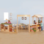 Natural wooden furniture set, ideal for schools and nursery settings.