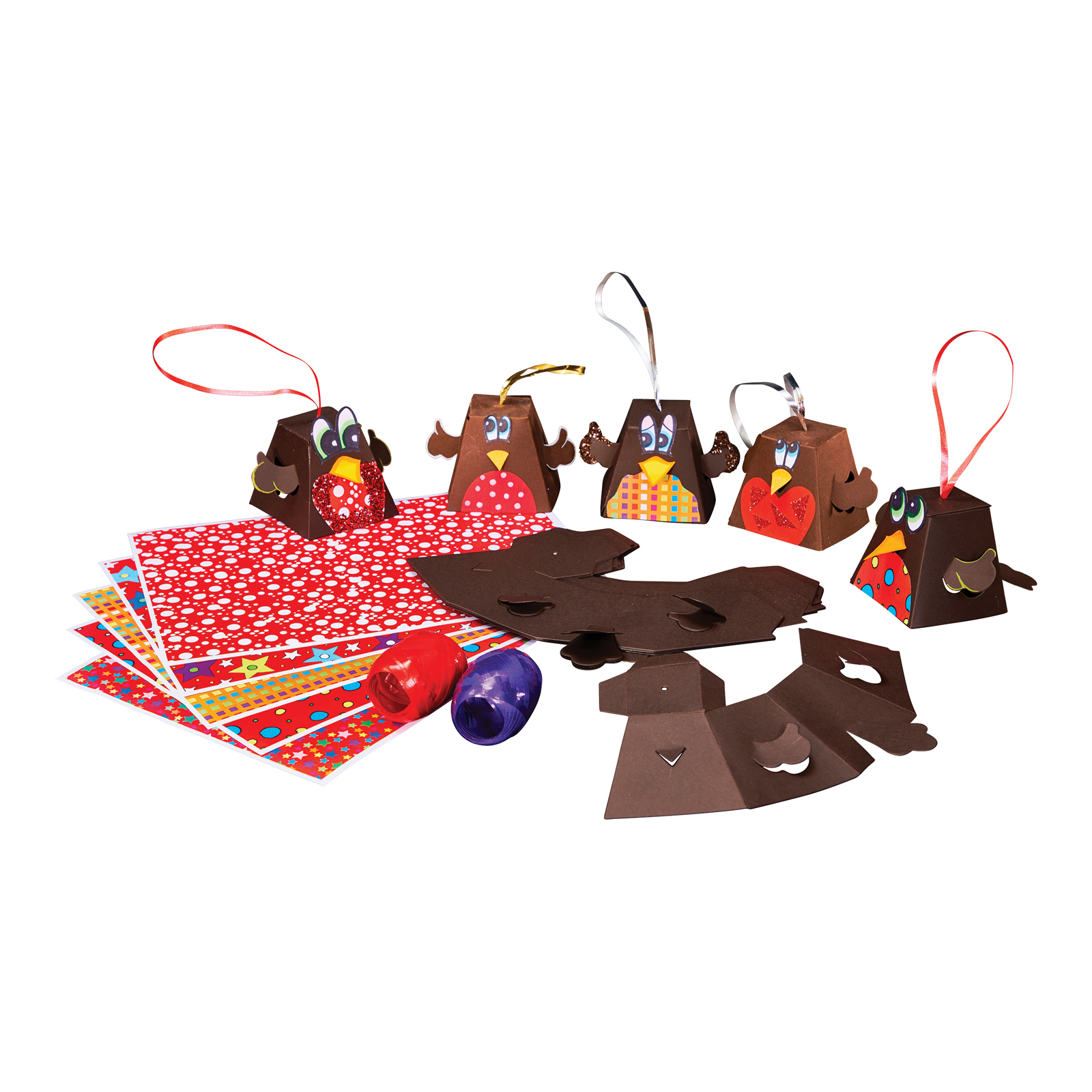 Create fun, feathery Christmas characters using these pre-cut card Robin decorations.