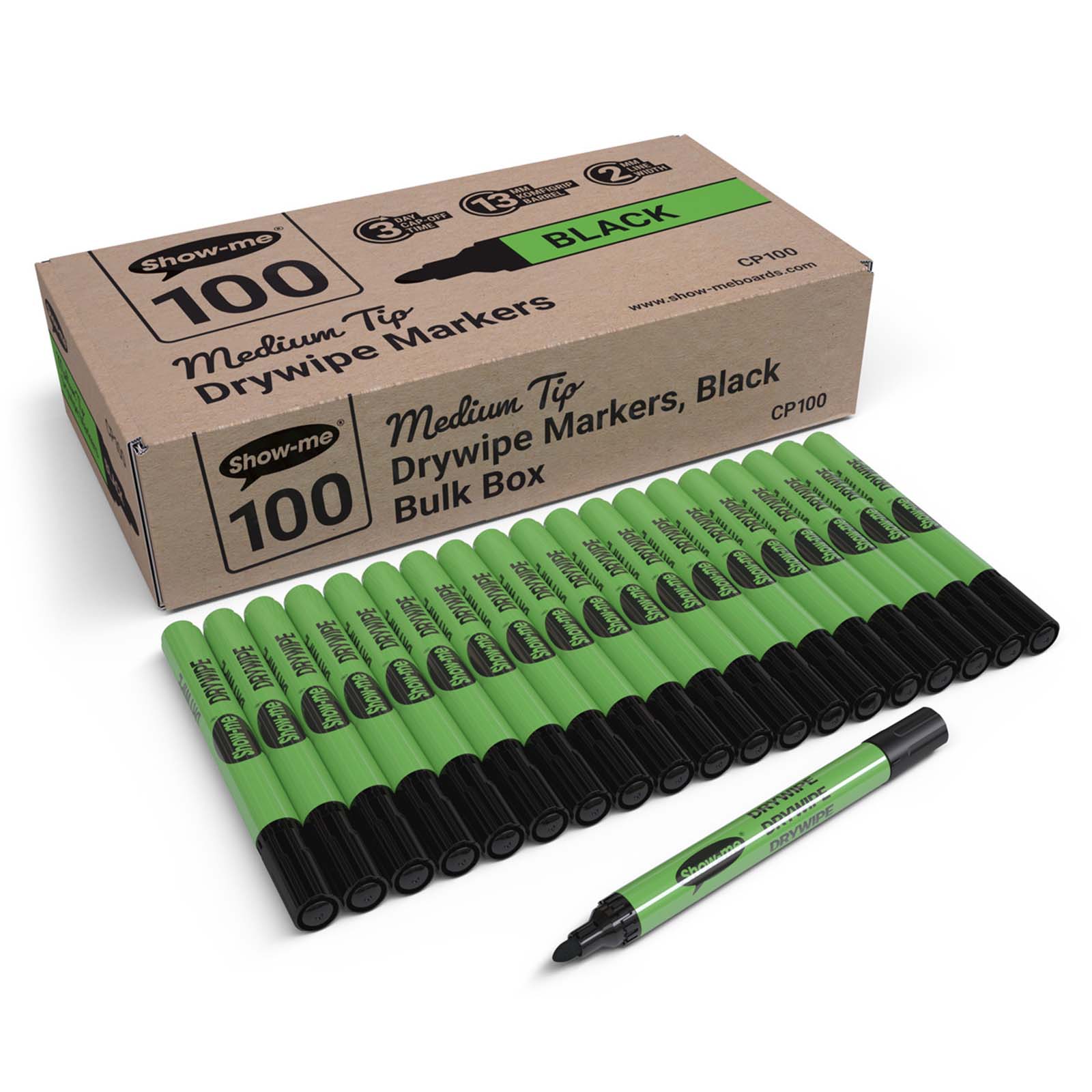 Show Me Black Dry Wipe Pens 100pk