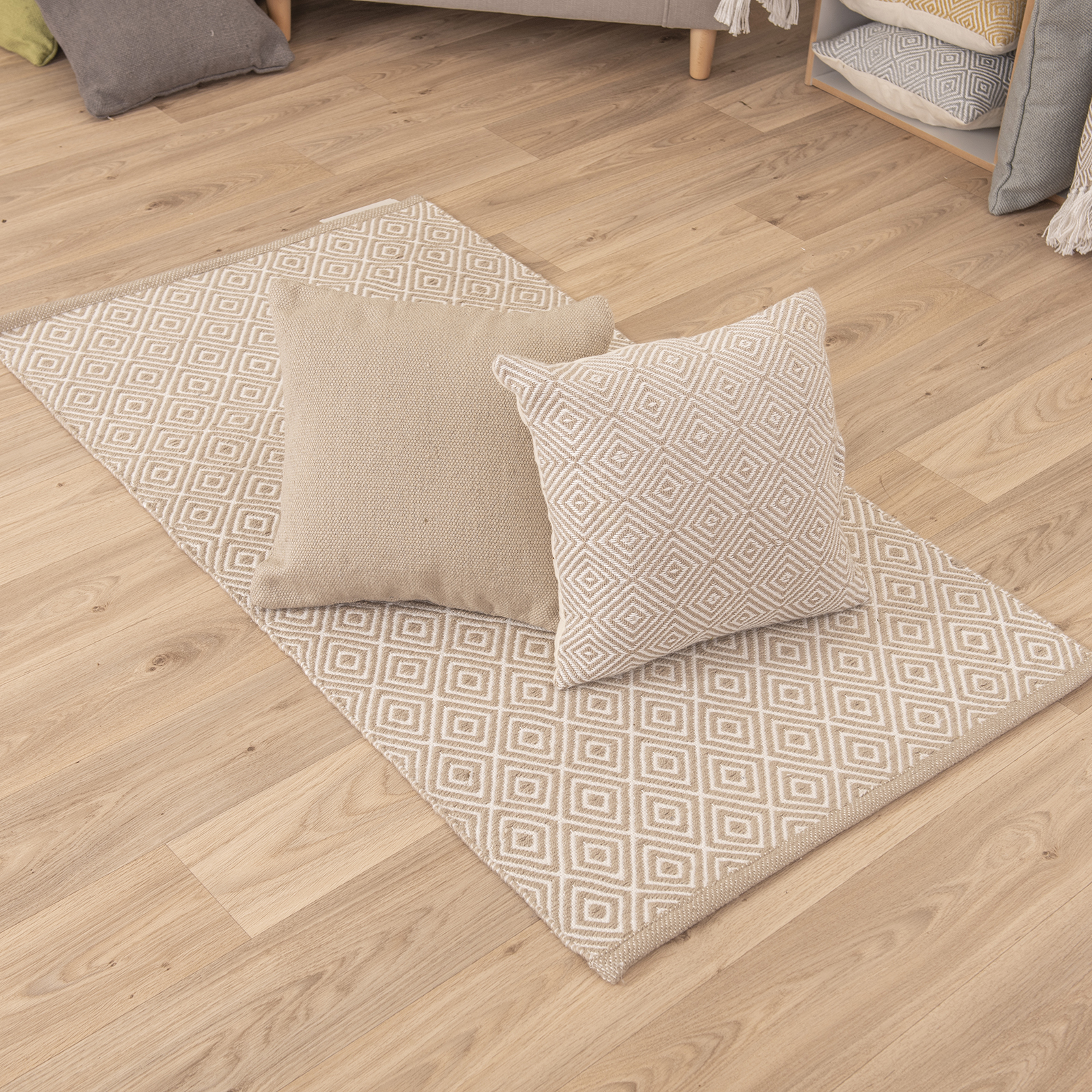 Small Eco Friendly Rug and Cushion Set Light Brown