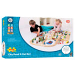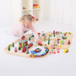 A high quality, wooden town set complete with both a road and a rail system and a large selection of town pieces.