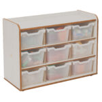 Robust, durable 9 tray storage unit, ideally sized for early years.