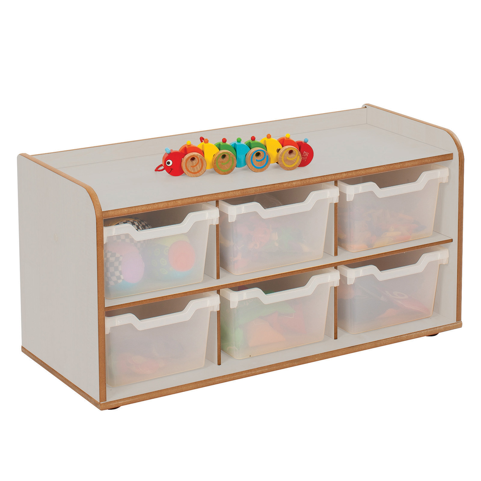 Robust, durable 6 tray storage unit, ideally sized for early years.