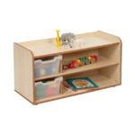 Robust, durable shelving unit with two trays, ideally sized for early years.