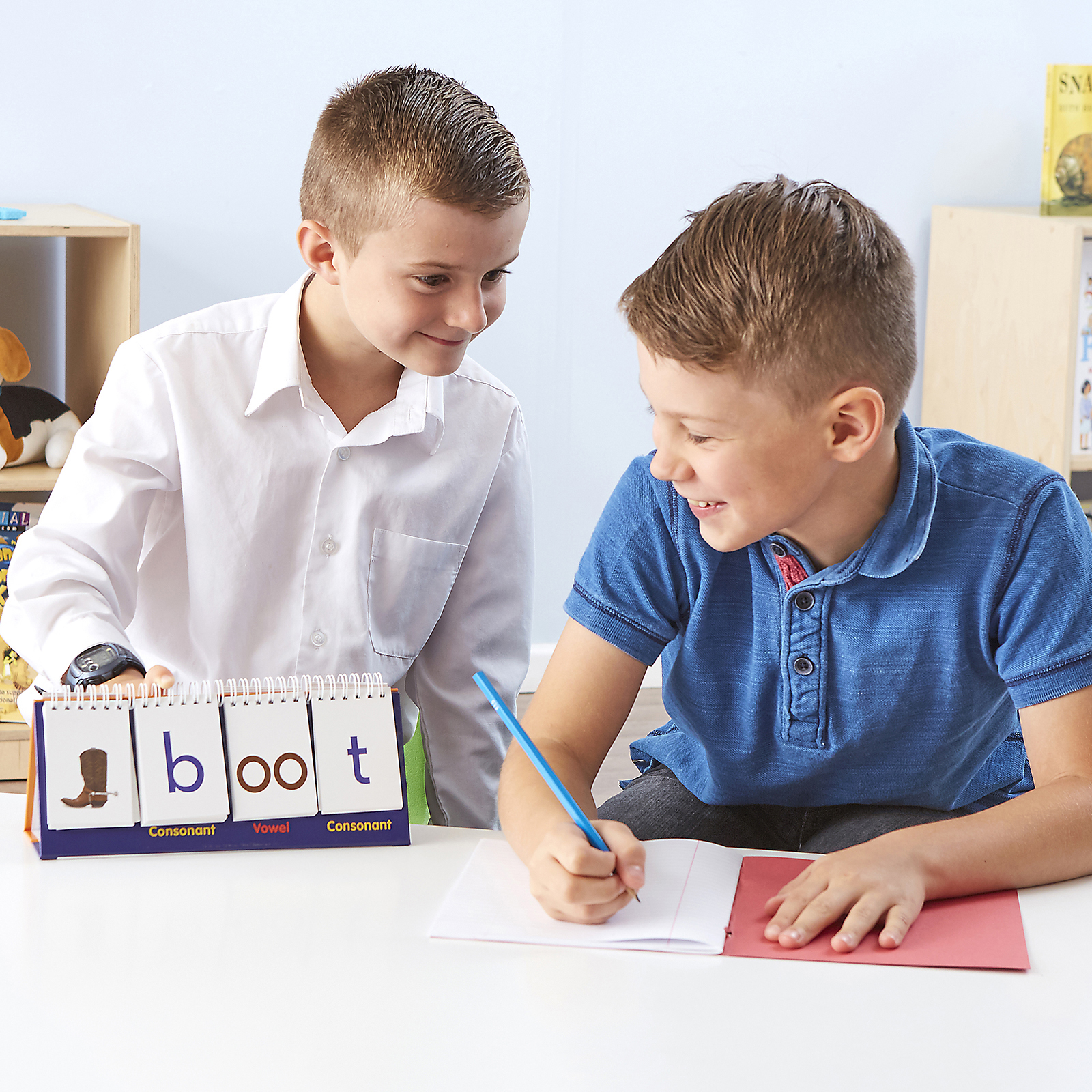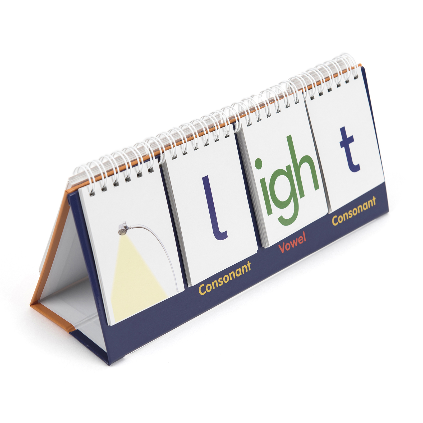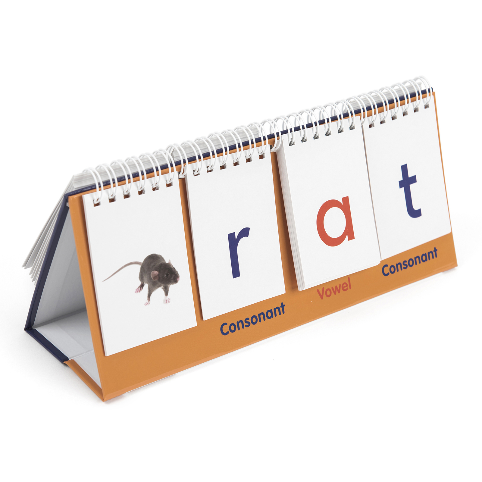 Double-sided flip stand which enables children to build new words.