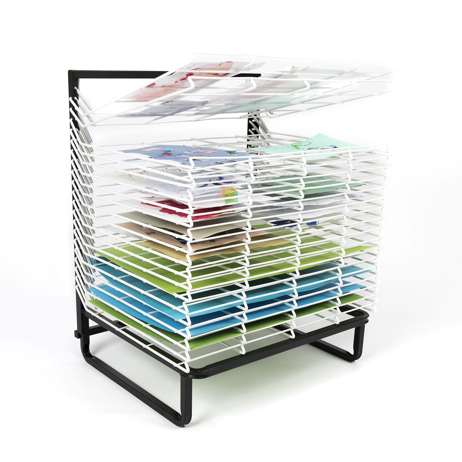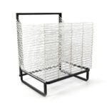 Freestanding drying racks that can hold up to A3 size paper.