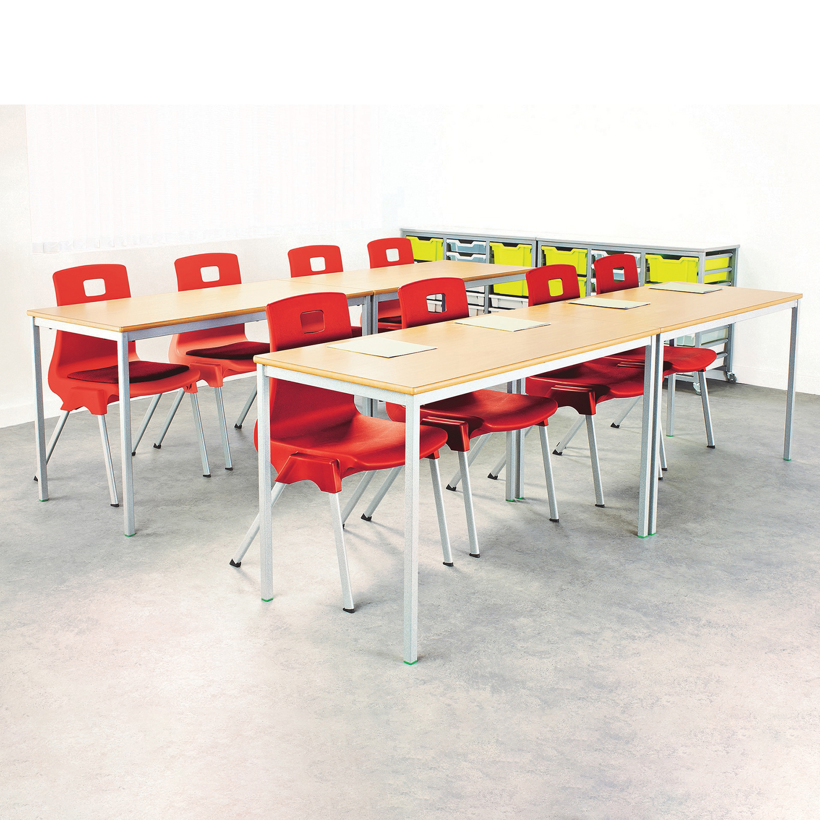 Comfortable and supportive classroom chairs which are stackable and easy to wipe clean.