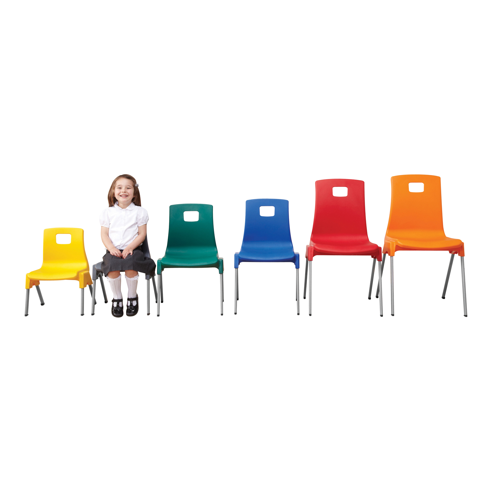 Comfortable and supportive classroom chairs which are stackable and easy to wipe clean.
