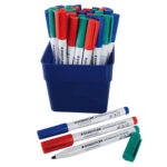 High quality slim barreled dry-wipe markers ideal for classroom and portable whiteboards.