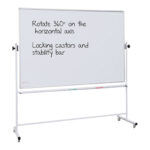 Mobile whiteboard that rotates 360° through its horizontal axis.