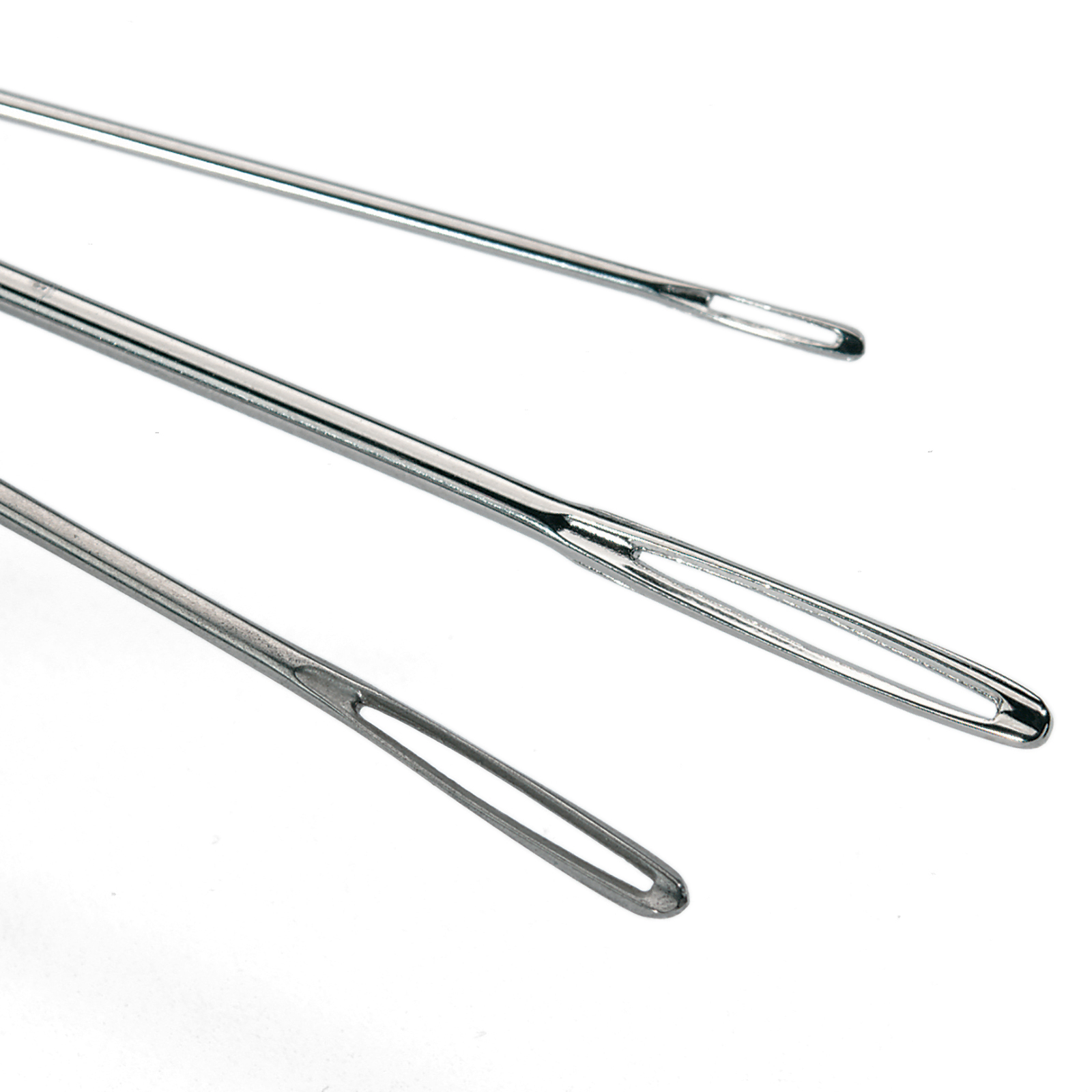 These tapestry needles have a larger head than the chenille needles, as well as a blunt point for cross stitch.