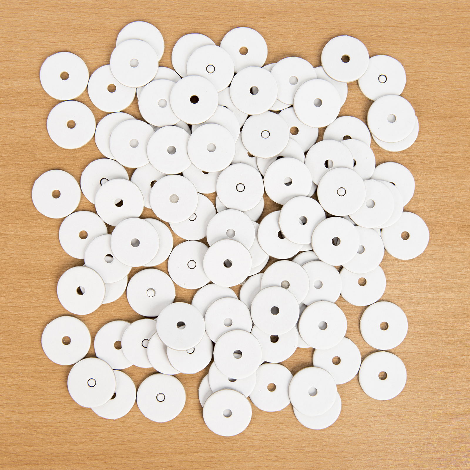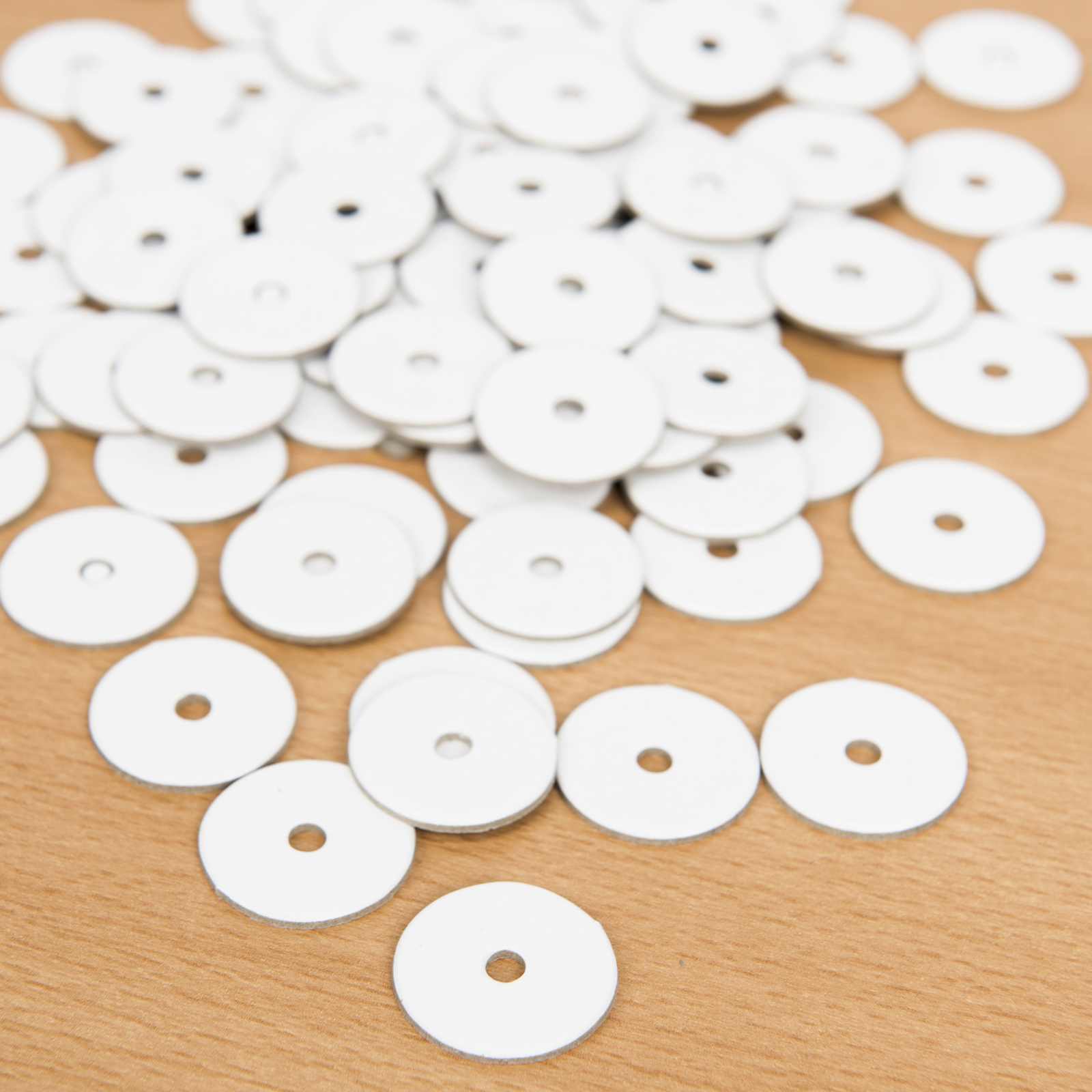 An alternative to the wooden wheel, these wheels are made from a stiff card and are drilled with a 5mm hole, to enable a perfect fit onto our 5mm dowel.