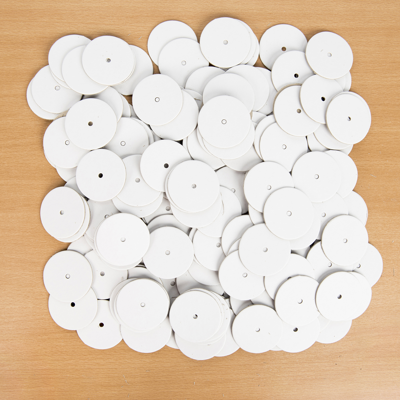 A great alternative to the wooden wheel, these wheels are made from a stiff card and are drilled with a 4mm or 5mm hole.