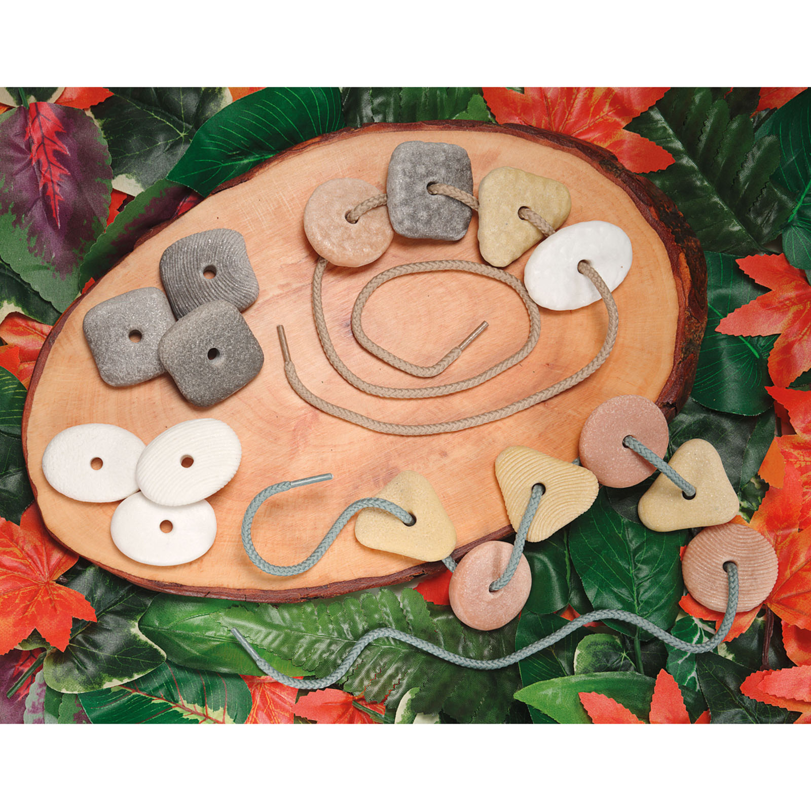 A beautiful tactile collection of threading stones, great for developing fine motor skills.
