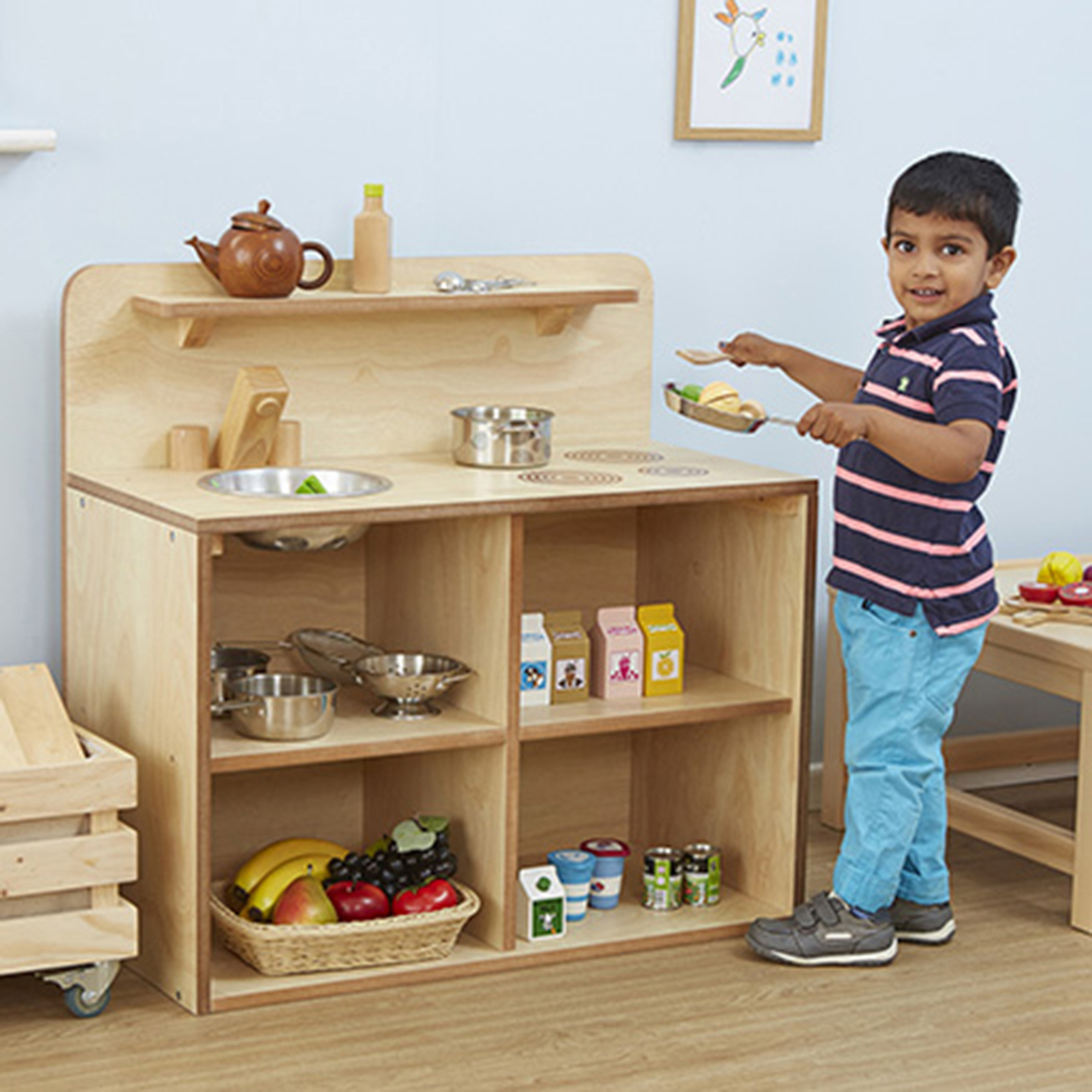 Toddler Height Wooden Kitchen Unit Sink