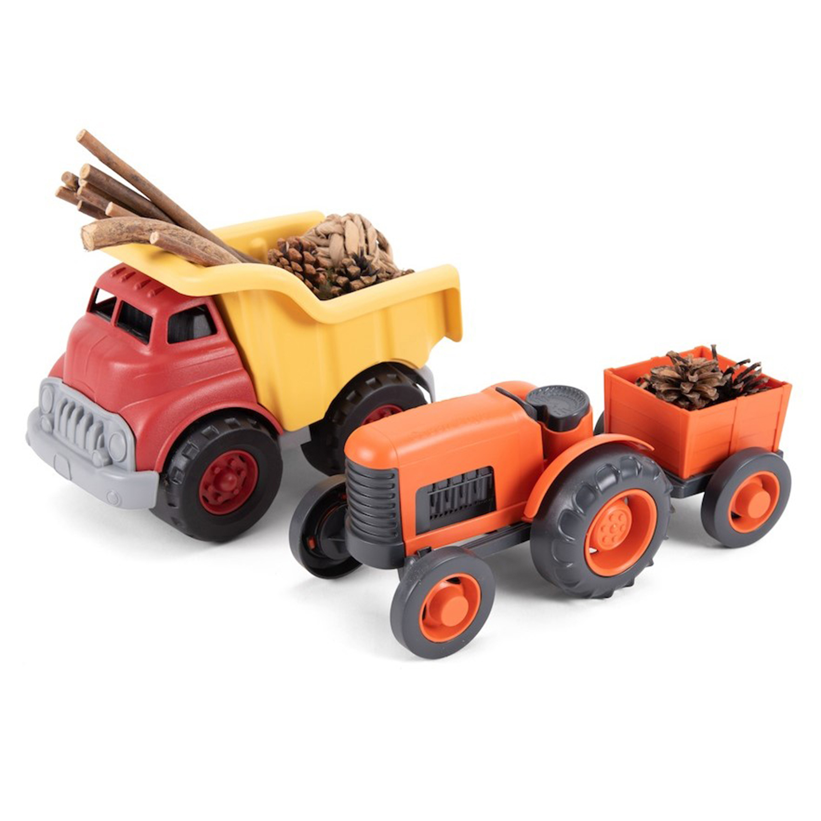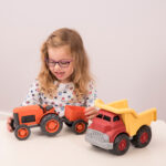 The chunky wheels on this set are great for mark making in sand or soil. The wagons can transport natural materials around and assist in small world activities and roles play.