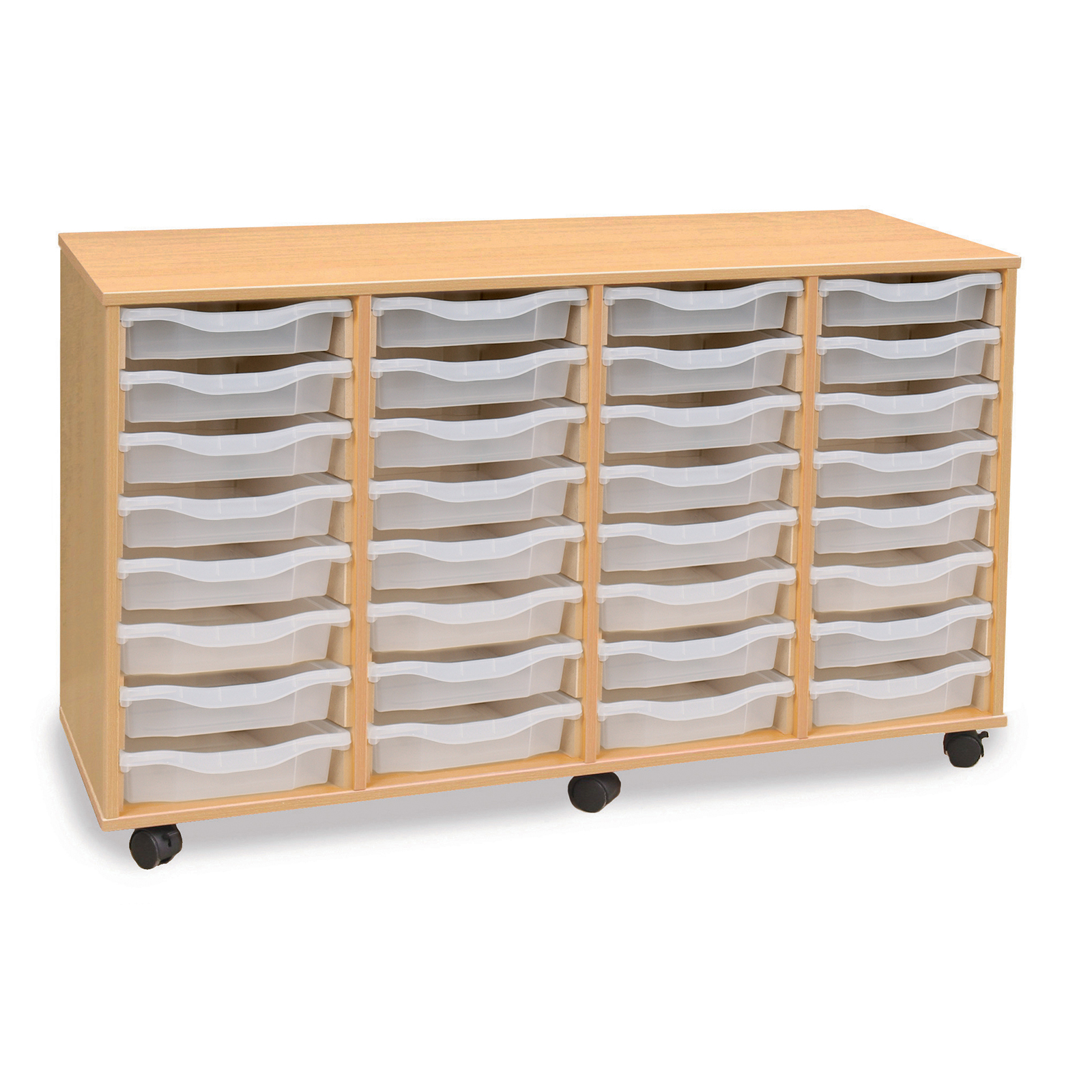 Tray Storage Unit With 32 Shallow Trays Green