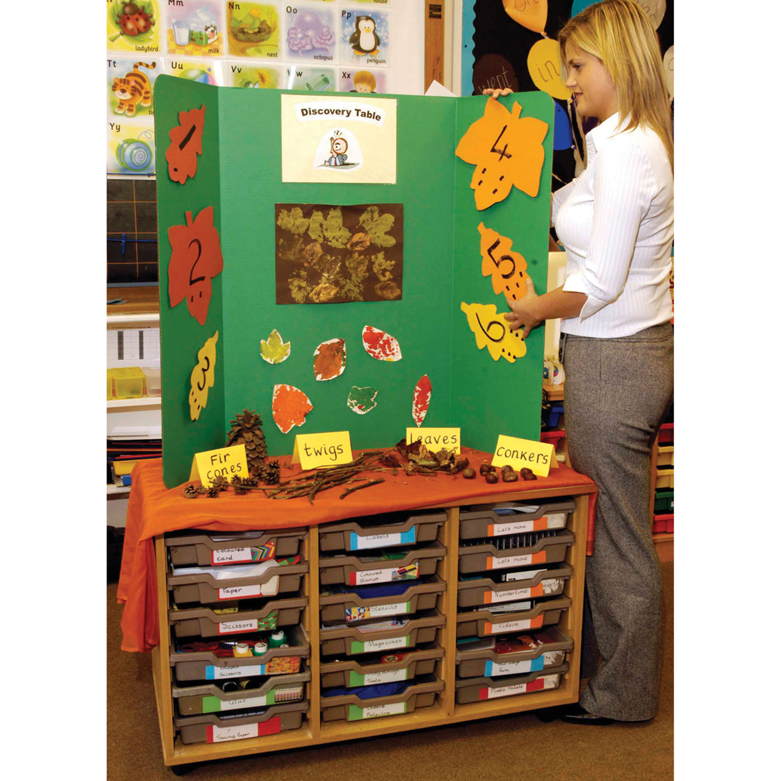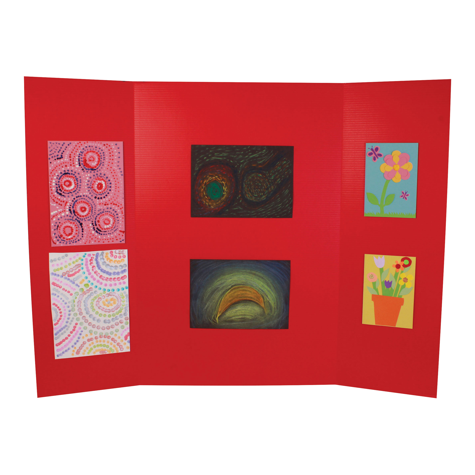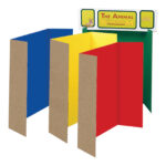 Packs of trifold, corrugated cardboard display boards.