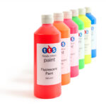 Ready-mixed tempera paint which dries to a fluorescent finish giving strong vibrant colours.
