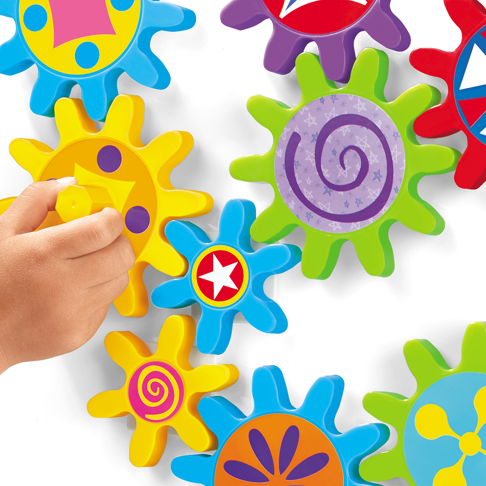 This set of brightly coloured, visually appealing gears will engage children as they fit them together and watch them all turn.