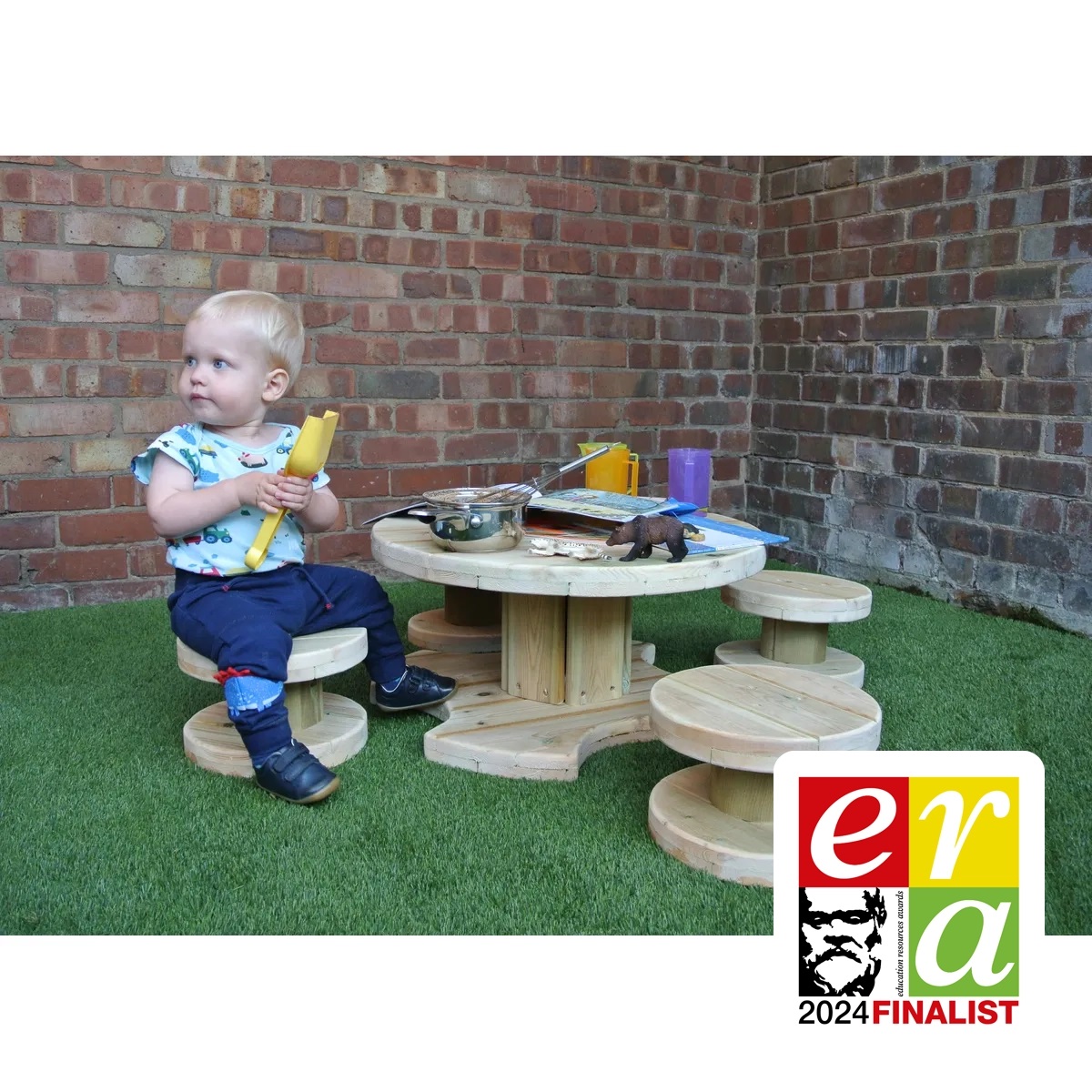 - Versatile Cable Reel Table: The cable reel table serves as a versatile centrepiece, offering a sturdy surface for activities, snacks, and collaborative play.