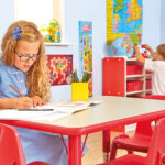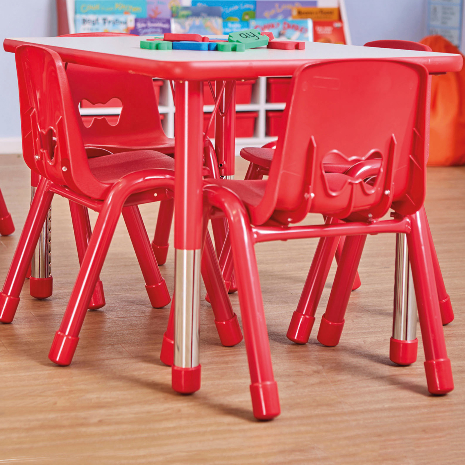 An extremely sturdy and robust table, suitable for seating up to four children.