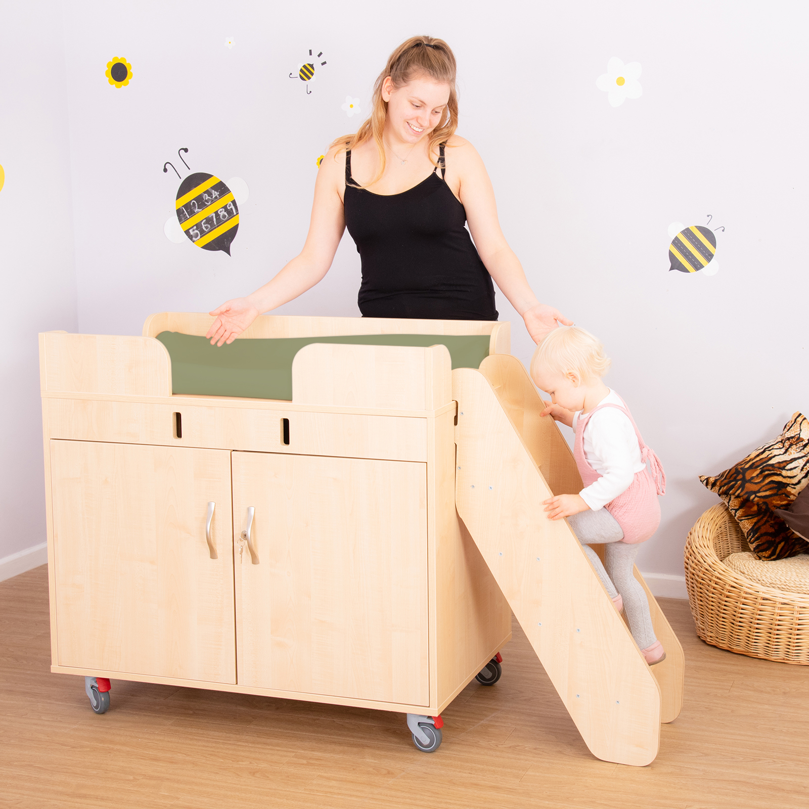 Walk Up Changing Table with Sage Green Antibac Mat
