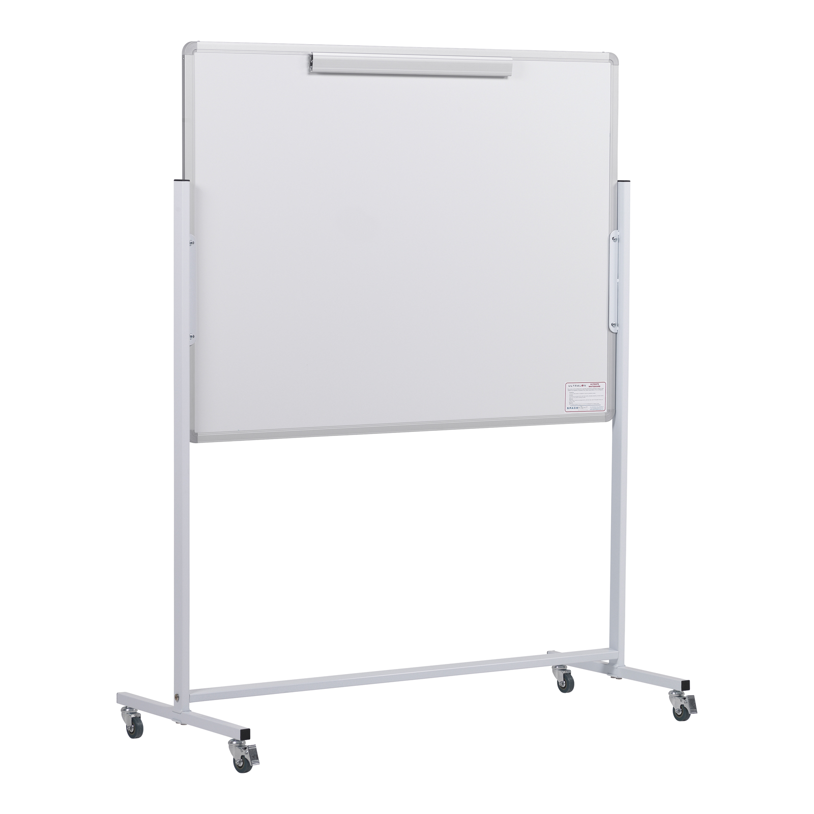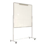 Magnetic whiteboard with flipchart combined with a felt noticeboard on its other side.