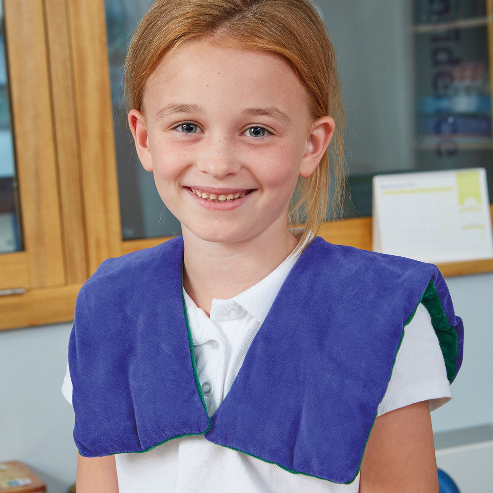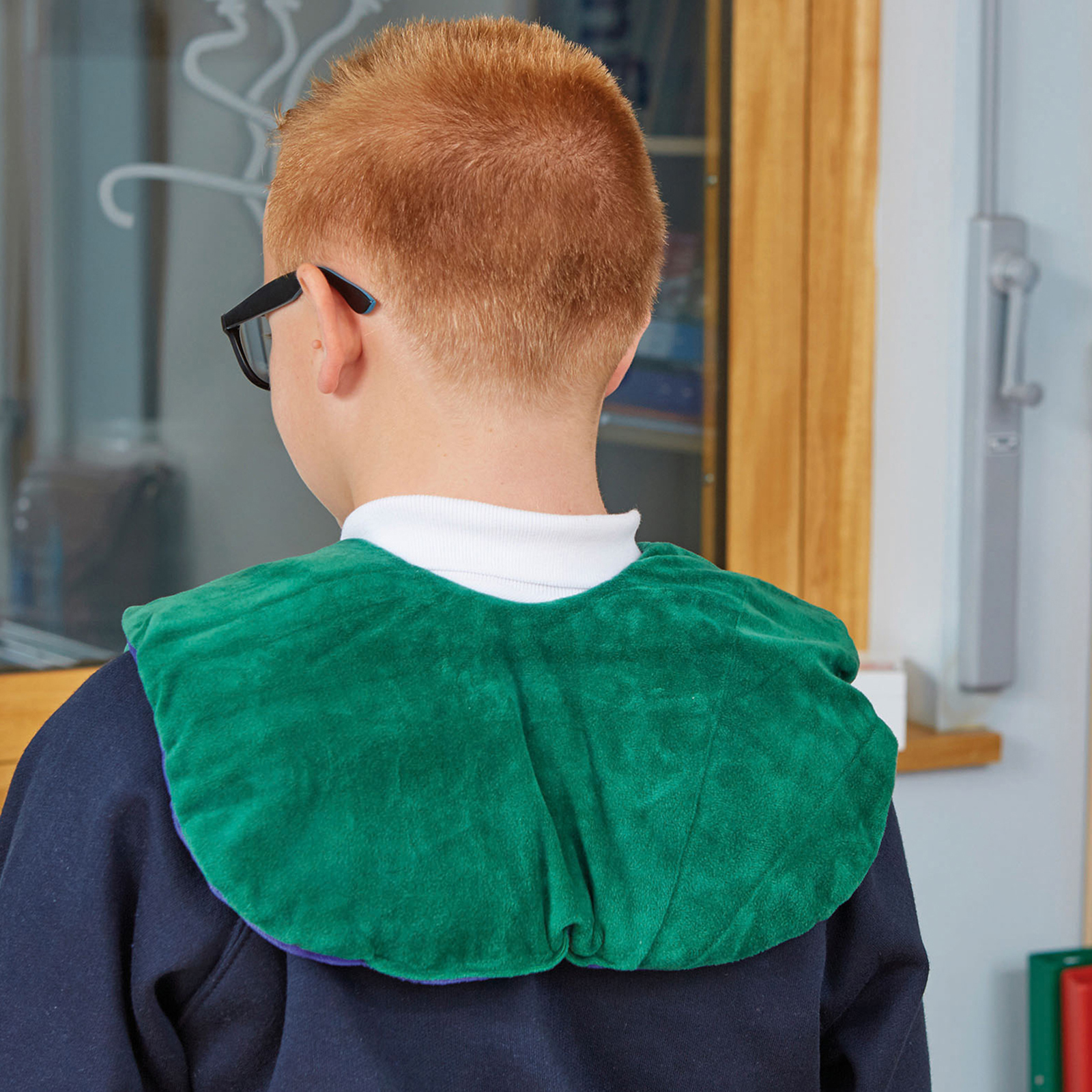 Provides sensation of calming deep pressure on the neck and shoulders