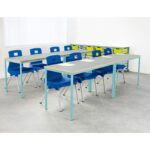 Robust children’s tables featuring welded frames and with a choice of colour options available.