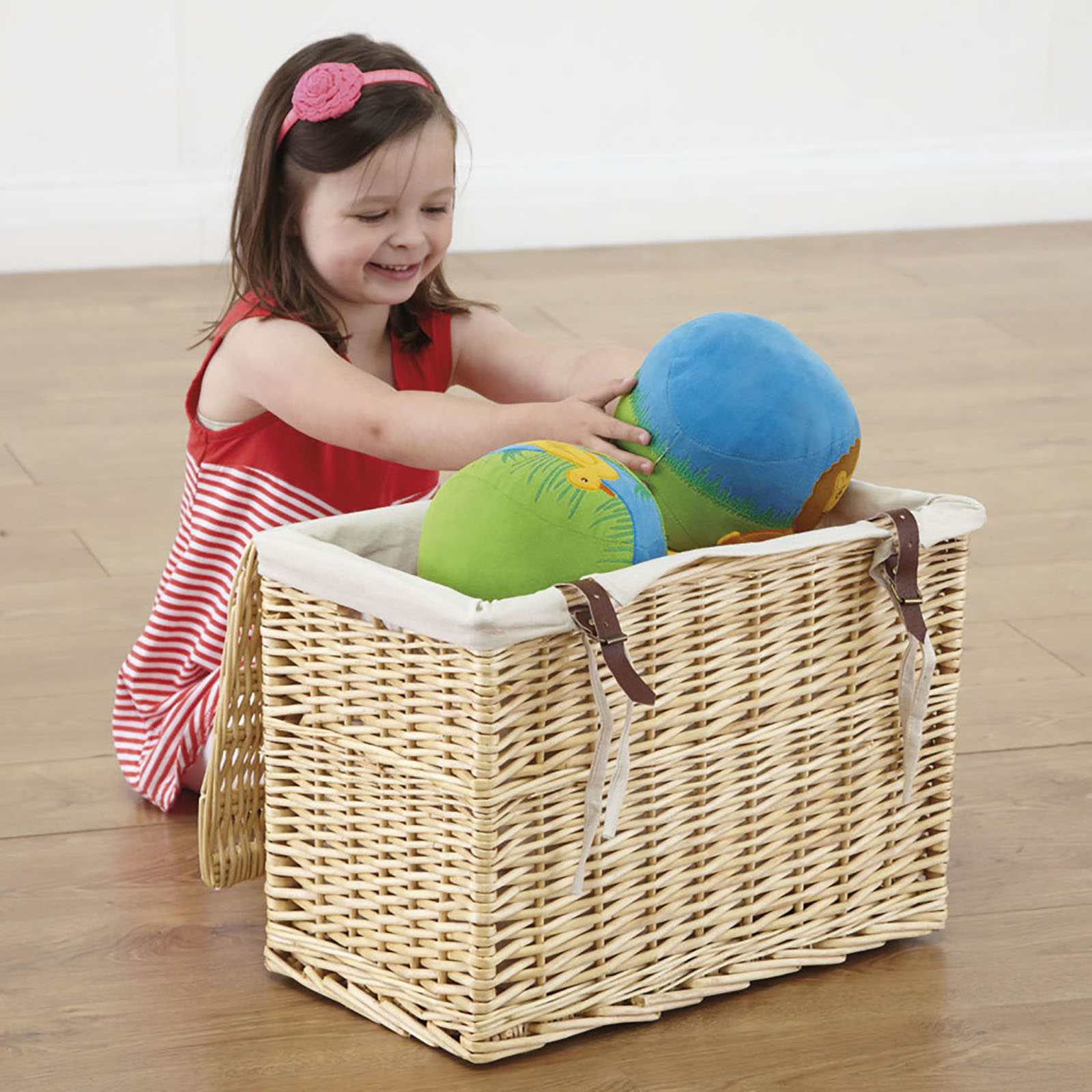 A beautifully woven collection of wicker hamper baskets, with cotton lining.