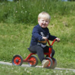This robust Winther push bike features a double front wheel to provide stability and to make balancing easier for younger children.