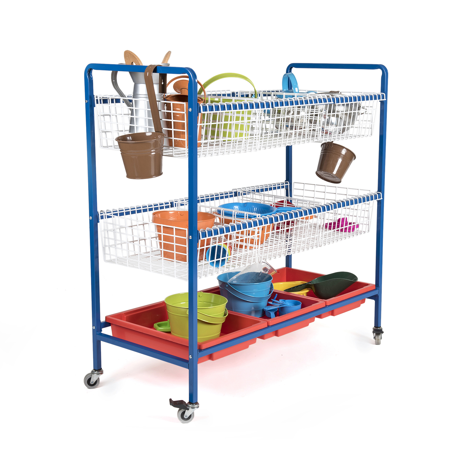 An ideal mobile solution for storing wet sand and water play resources.