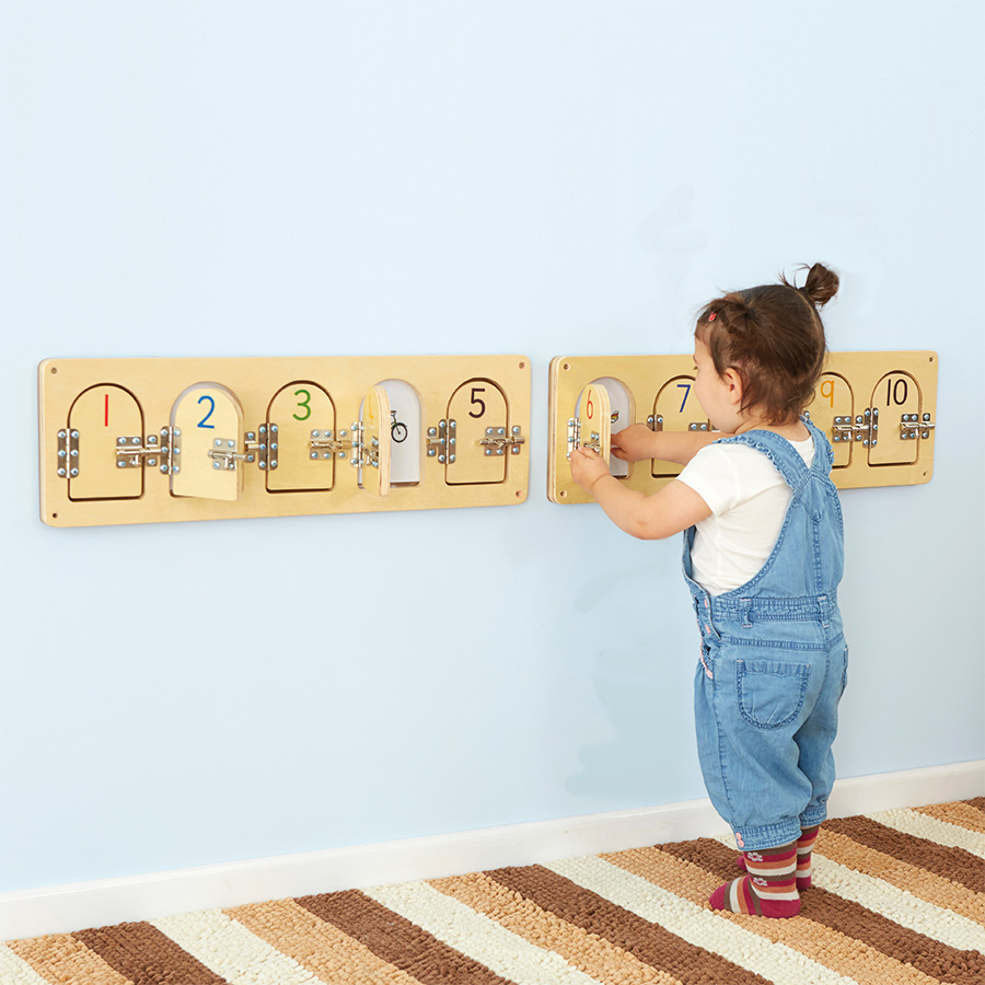 Open the bolt latch to investigate what’s hidden behind the numbered doors. Change the cards behind the doors for an open-ended resource.