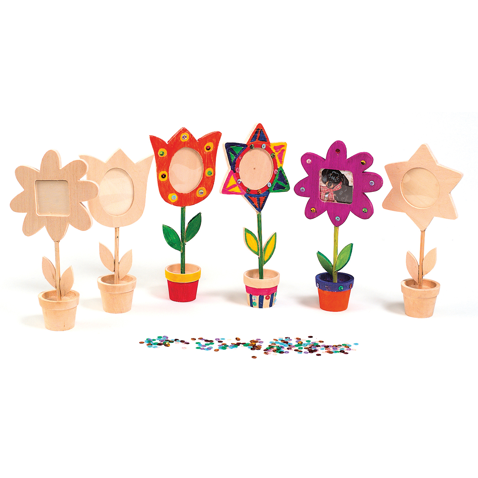 Decorate these wooden frames with markers, paints or glitter.